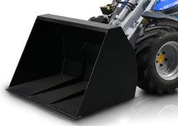 Den bagerste del af skovlen er høj, hvilket forhindrer materialer i at falde over bagkanten og garanterer samtidig høj volumen. Den er udstyret med forstærkningsplader indeni, og den stærke forkant er lavet af slidstærkt stål med høj slidstyrke.