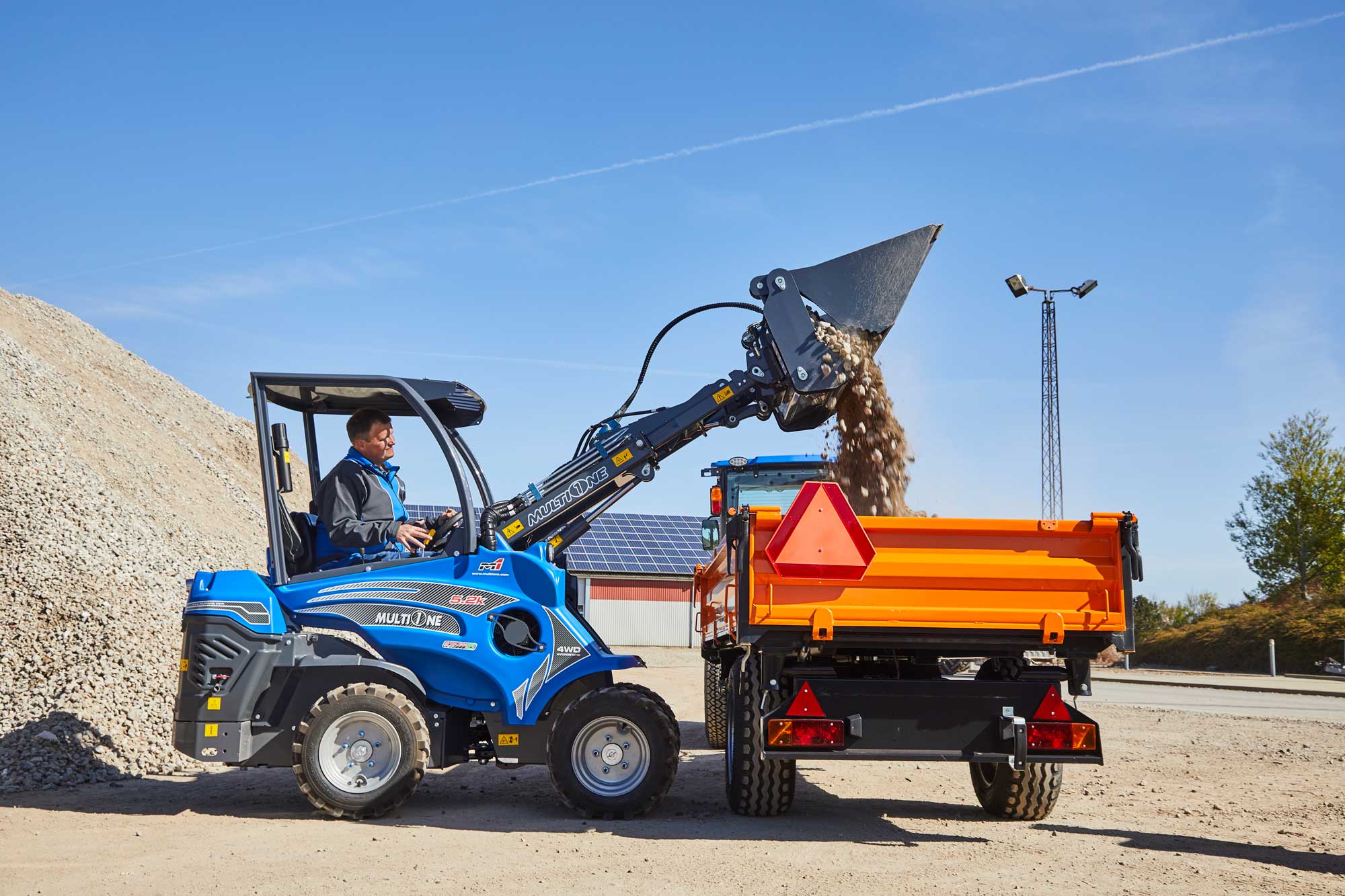Har du brug for en minilæsser, bør du altid undersøge mulighederne i MultiOnes produktprogram. Du kan få mange forskellige modeller fra 12 – 78 hk, så uanset hvilket behov du har for hk, kørsels-hastighed, hydraulik og løftehøjde, findes der en løsning.